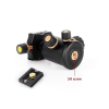 Quick release shoe and 3 tightening threads for horizontal, vertical and lateral adjustment.