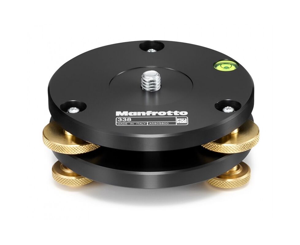 The 338 is fitted between the tripod and the head and is used in combination with tripods that do not have integrated leveling mechanisms.