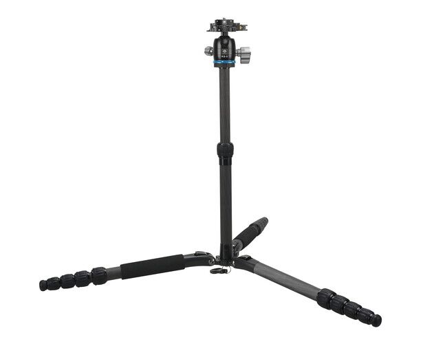 The Sirui T-005SK T-0S series travel tripod with KS-5 ball head is a five-section support system with carbon extendable legs that, together with a two-stage central column, reach a maximum height of 54.2".