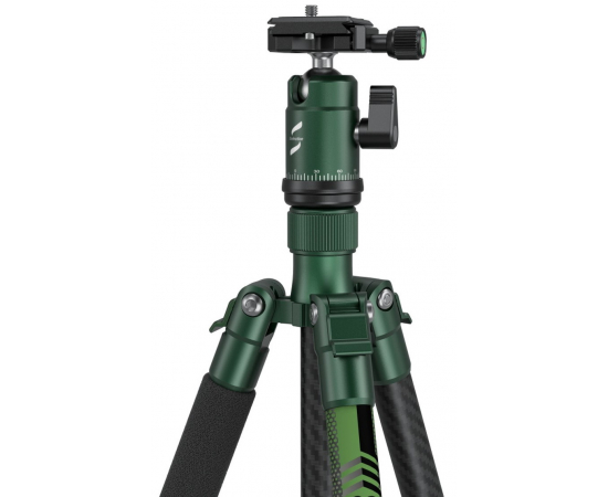 The tripod comes with a 360º panoramic rotation ball head and an Arca-Swiss-type quick-release plate for a quick switch between handheld shots and tripod shots.