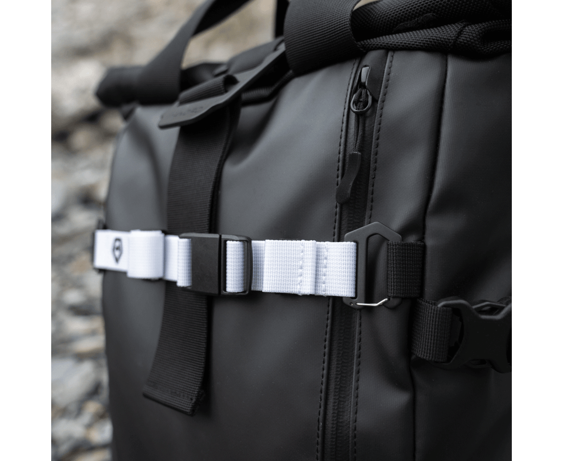 The same general features as our original accessory straps, only better; our new Premium accessory straps feature enhanced components and superior functionality. We've developed custom metal components for added strength and durability, and we've added a quick-release magnetic buckle for easy attachment and removal of your gear. Our dual-fit system features a longer side for general adjustments and a shorter side for micro-adjustments, allowing you to quickly and accurately attach a wide variety of gear to your backpack. We've updated our logo to a reflective print to increase your nighttime visibility, and we've developed a new tip management system with Velcro, so your straps are always looking flawless and free of loose ends.