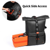 Expandable Capacity: The easy-access rolling top of the camera backpack, which offers 10% extra space, as well as external accessory pockets for personal things and external tripod bag.