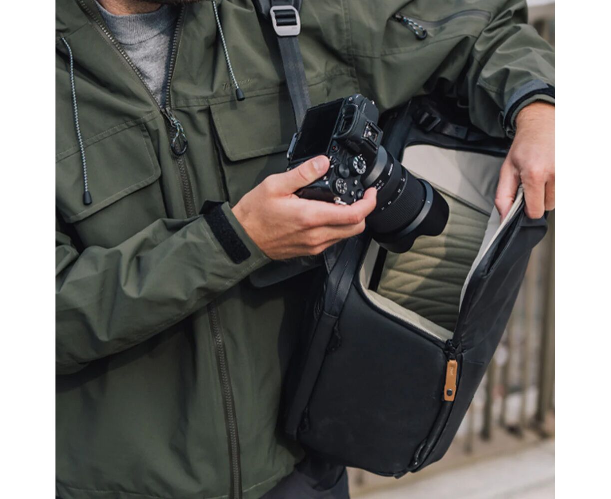 - Top opening with magnetic closure for quick access to everyday items or the camera