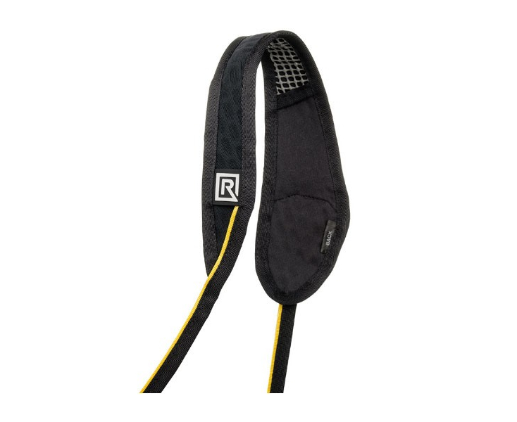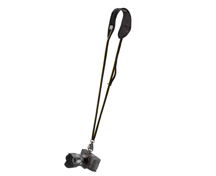 The strap is used diagonally from the shoulder to the hip and is adjustable to all photographers.