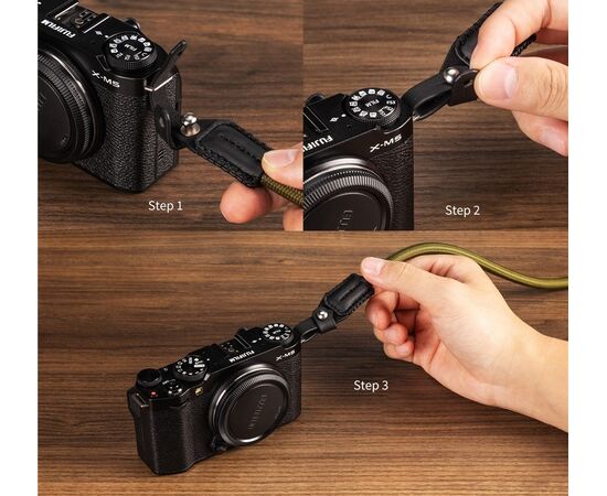 - Easy installation: The leather is tucked into the loop of the camera's shoulder strap to use.