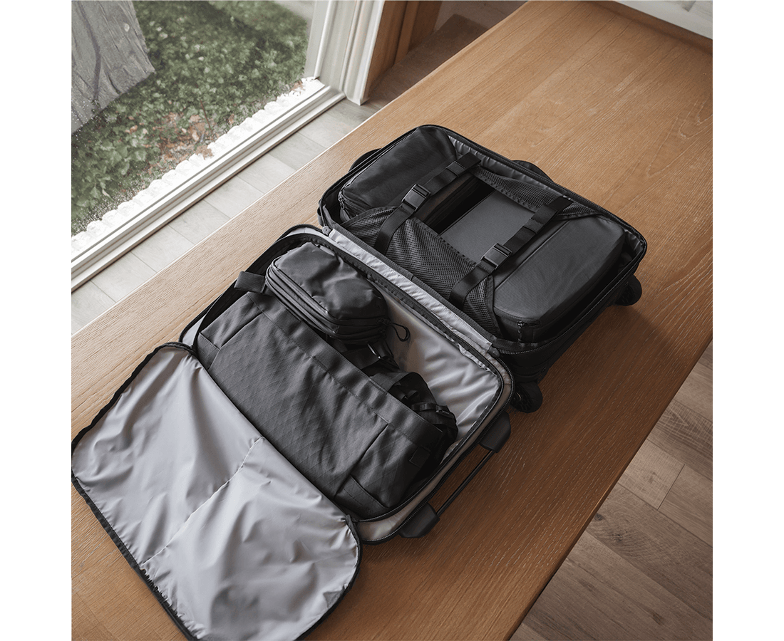 A rolling suitcase, made for the real world. More than just luggage, it demonstrates our commitment to creating products that enhance and elevate your travel experience. Its compact and spacious interior accommodates your essentials, with dedicated pockets and compartments so your belongings are organized and within easy reach.