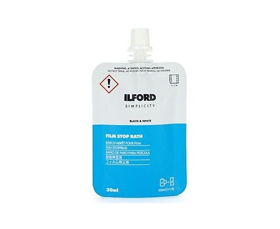 ILFORD's Simplicity Bath Stopping Bath contains the required amount of Ilfostop to develop 2 rolls of 35mm film or 1 of 120 in a 600ml tank, 1 + 19 dilution.