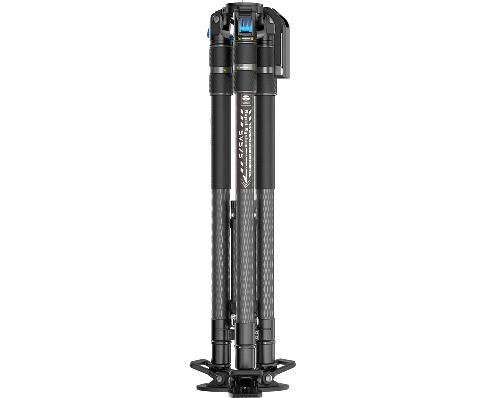 SVS75 Rapid System video tripod with single-stage height adjustment and SVH15 Drag-Control video fluid head.