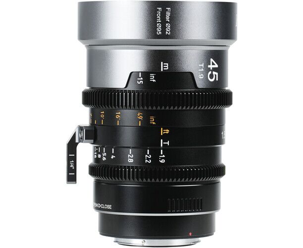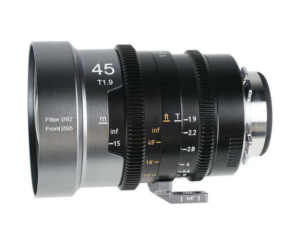 This 45mm IronStar lens has a front outer diameter of 95mm and its 0.8 MOD focus and iris gears are compatible with most standard matte boxes, follow focus units, and lens control systems.