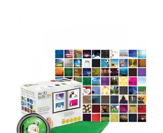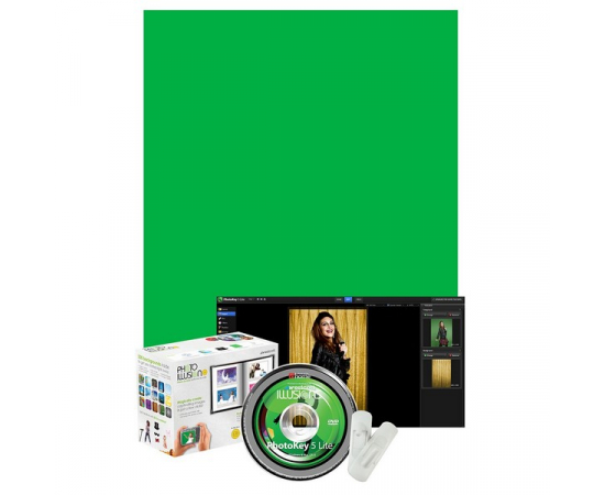 Software Kit that includes a 1.5 x 2.1 m Chromakey green fabric background and the easy-to-use Illusions PhotoKey Lite software. Just one click on the software and the green background is automatically extracted and replaced with one of the 200 included digital backgrounds. It has backgrounds of different themes, so you can create more diverse environments. In addition to the included scenarios, you can also import almost any JPEG image for use. After selecting your background, you can finalize your image using the software's editing tools that include auto-key color, brightness, contrast, saturation, blur, image flip, rotation, scale, transparency, overlay, etc.