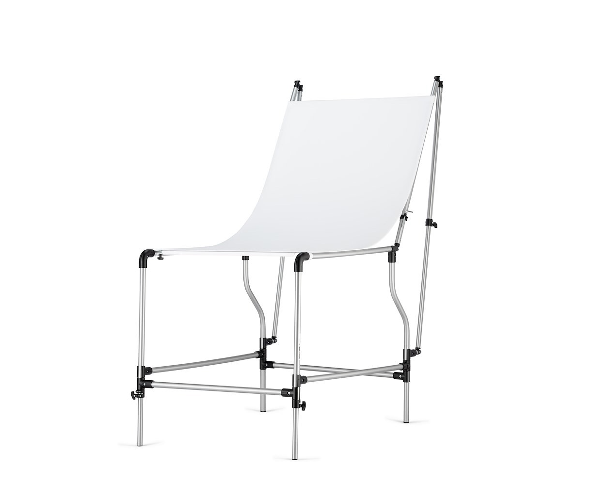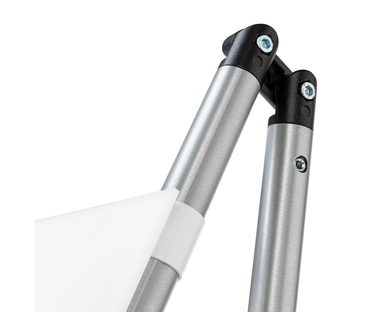 Scaled-down version of the 220 studio desk. Includes table and acrylic panel. Dimensions: 150 cm x 78 cm. Working height: 70 cm. Maximum height with the panel in the vertical position: 157 cm. Tilt back panel and adjustable feet.