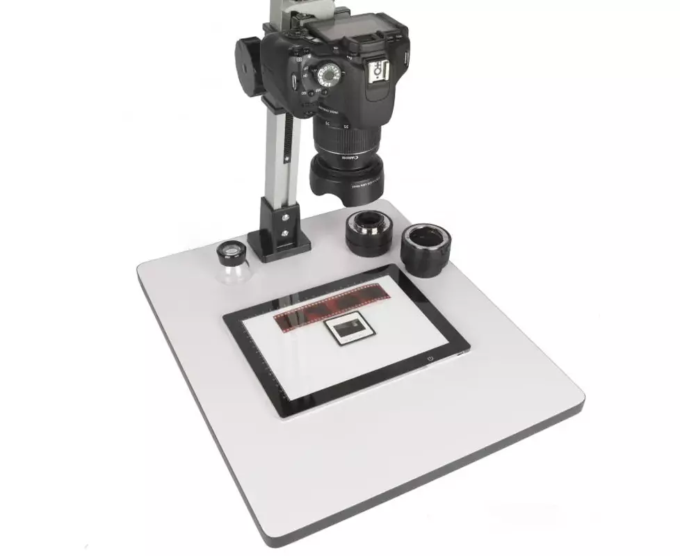 You work on a flat, sturdy base that keeps products and documents perfectly framed.