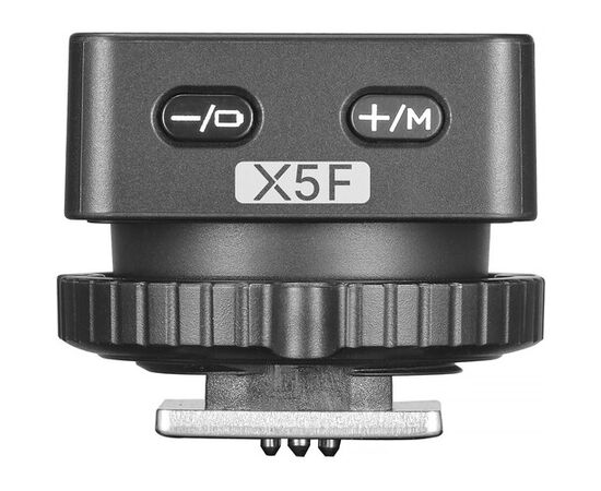 The X5 functions as a hot shoe mount and wireless transmitter, allowing for a smooth transition between on-camera and off-camera use. When connected to the iT32, it acts as a hot shoe for in-camera shooting; once turned off, it automatically switches to transmitter mode, wirelessly controlling the iT32 or other flashes of the Godox Wireless X System.