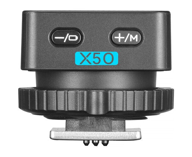 The X5 functions as a hot shoe mount and wireless transmitter, allowing for a smooth transition between on-camera and off-camera use. When connected to the iT32, it acts as a hot shoe for in-camera shooting; once turned off, it automatically switches to transmitter mode, wirelessly controlling the iT32 or other flashes of the Godox Wireless X System.