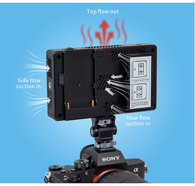 This innovative design of external power supply meets the need for power for wireless outdoor transmission, LED light and other equipment, greatly saving the space occupied by the equipment and reducing the weight of the photographic equipment.