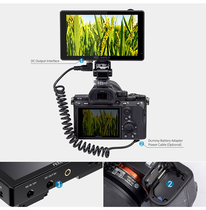 The LUT5 is not only equipped with DC IN 12V, but also provides auxiliary power (DC OUT 8V) allowing shooters to turn on their cameras.