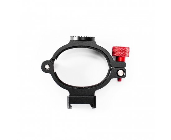 The Caruba mounting adapter ring attaches to the top of the stabilizer handle and locks with a large thumbscrew.