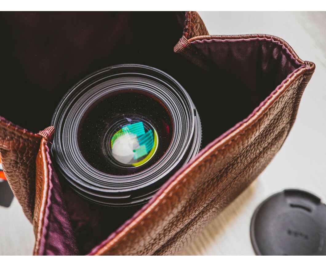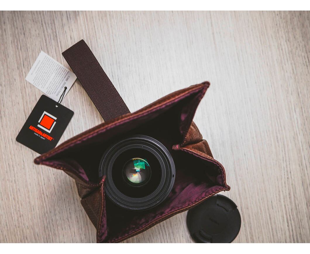 Entre os dois tamanhos disponíveis, este produto é o grande (L), ideal para guardar corpos de câmaras compactas, fotómetros, diversos adaptadores e acessórios. Fabricado com um material de couro sintético macio e agradável ao toque, este produto oferece uma experiência tátil agradável. Está disponível em duas cores: preto e castanho. A pega de fecho e o logótipo são também em cores a condizer, reforçando a sensação de simplicidade e luxo.