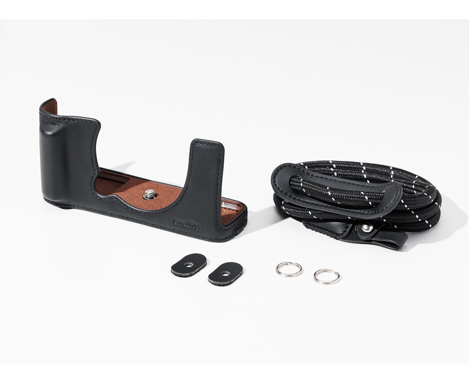 O Kit Capa de Couro Fujifilm X-E5 foi concebido para oferecer uma proteção completa e, ao mesmo tempo, realçar o aspeto vintage da câmara. Este kit inclui um estojo e uma alça de ombro.