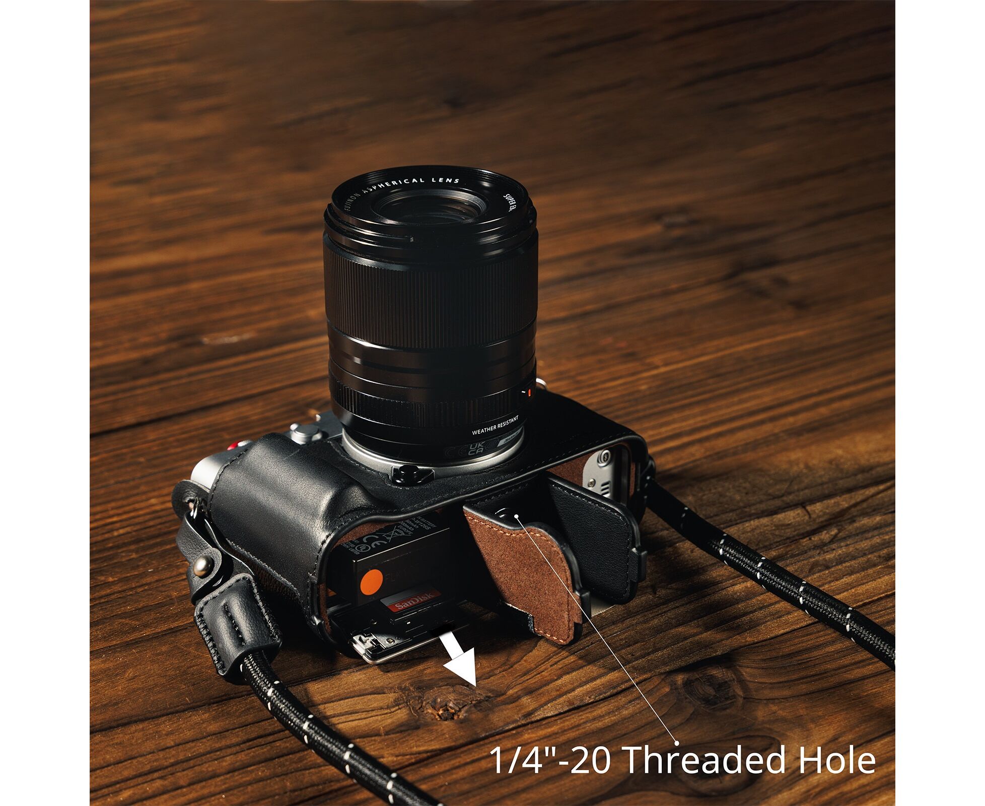 Fabricada em pele premium de primeira qualidade, a capa oferece uma durabilidade e respirabilidade excecionais, complementadas por uma estética retro distinta. A pega de espuma integrada aumenta a estabilidade e o conforto durante a utilização, enquanto o forro de camurça de microfibra protege a câmara eficazmente contra riscos.