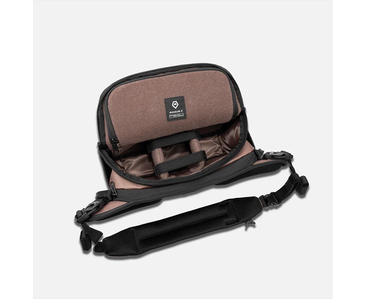 A ROGUE 6L oferece funcionalidades num formato simplificado e perfeito — perfeita para criadores, viajantes e para quem carrega mais, mas que ainda assim quer viajar com pouca bagagem. Se se mantém nos trilhos, não se preocupa com a cor e não é obcecado pela união de estilo e funcionalidade, esta mala tipo sling não é para si.