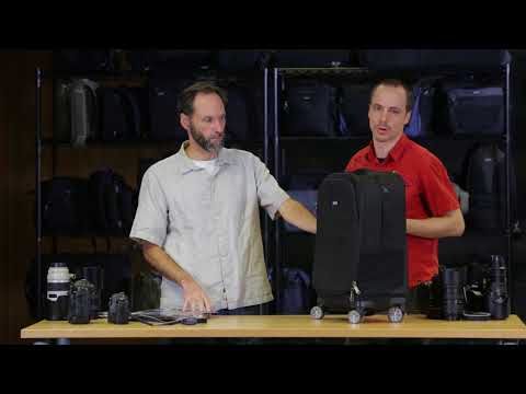A bolsa possui quatro conjuntos de rodas duplas estilo patins em linha que giram, para que possa facilmente rolá-la lateralmente pelos corredores ou entre pessoas em multidões. É fornecido um cabo e um cadeado para bloquear o fecho e prender a bolsa a um suporte. Uma capa de chuva também está incluída para proteger os seus equipamentos em condições climatéricas adversas.