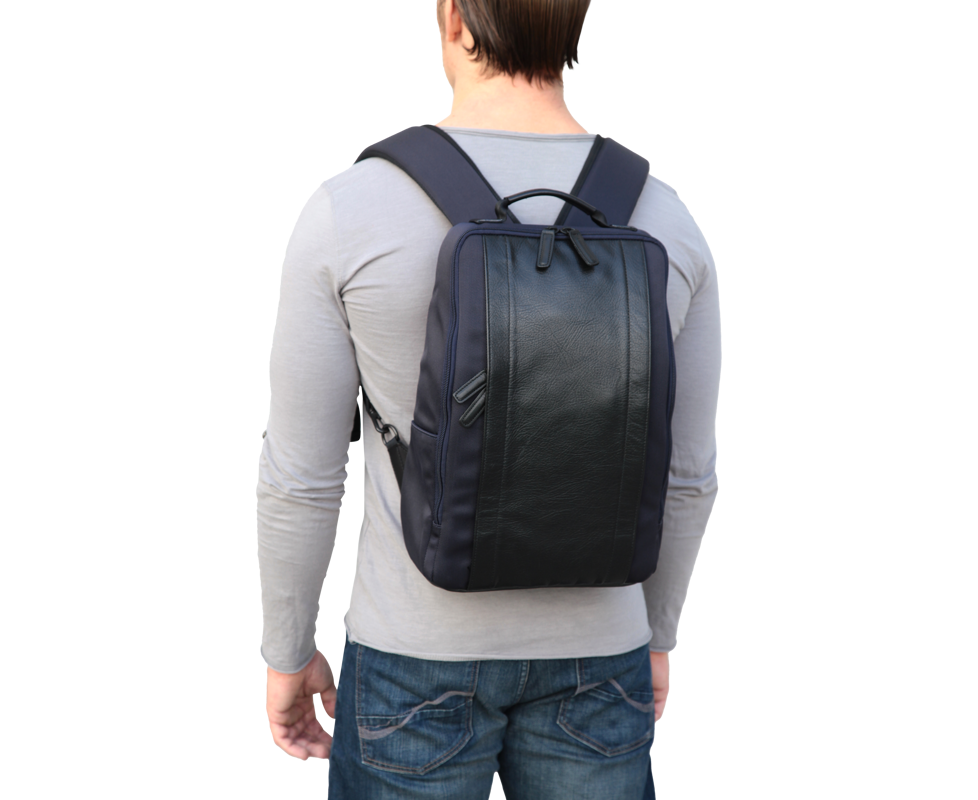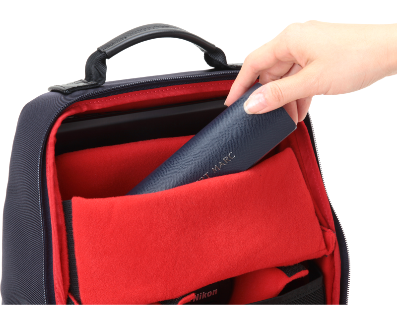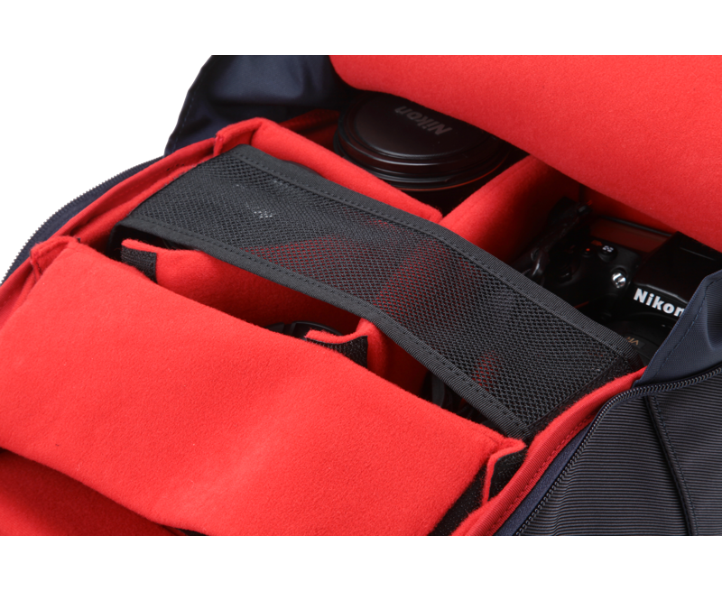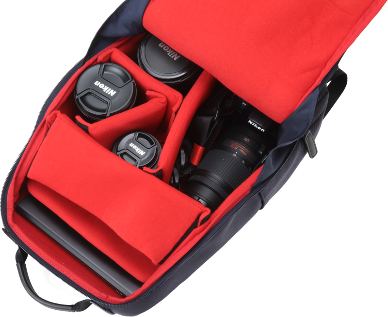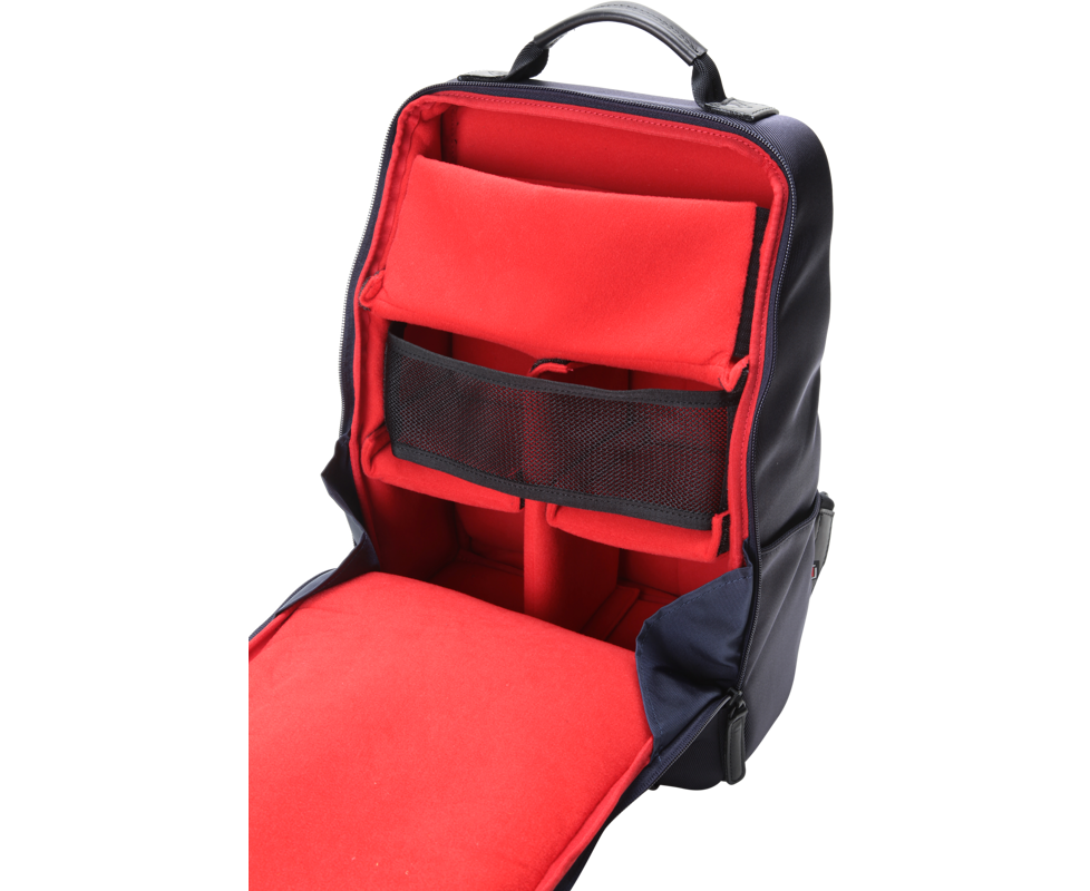 Mochila para câmaras fotográficas com detalhes em pele na parte frontal, um tradicional e elegante. O formato desta mochila foi concebido para minimizar os espaços vazios, resultando num design compacto e prático. O compartimento principal acomoda uma câmara de tamanho médio, quatro lentes intermutáveis e um computador portátil de 13 polegadas. O compartimento frontal com fecho é ideal para guardar pequenos objetos. Além disso, ao guardar as alças dentro do bolso traseiro em rede, a mochila pode ser transformada numa pasta vertical.