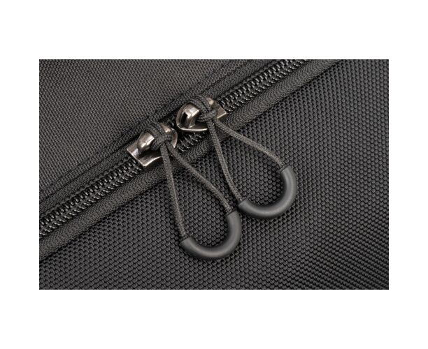 - A tampa articulada com fecho magnético proporciona acesso rápido ao bolso frontal.