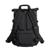 A bolsa está equipada com bolsos especiais para passaporte, smartphone, chaves e um compartimento especial para baterias e cartões de memória na aba da mochila.
