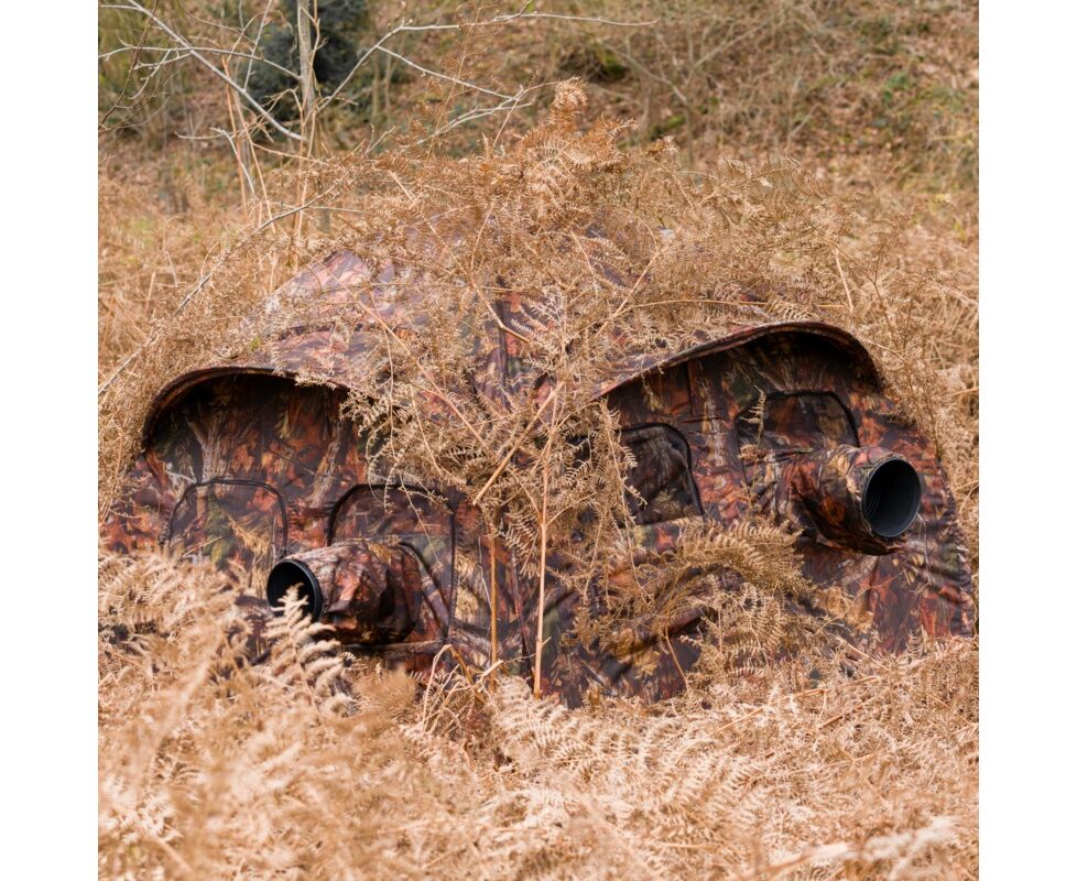 - Em dias de chuva, é possível fechar o tecido exterior das janelas fotográficas e usar um fecho no meio para as fechar à volta da lente, de forma a que a tenda fique bem vedada, mas ainda consiga tirar fotografias; as laterais que não utilizar para fotografar podem ser utilizadas como janelas de visualização, abrindo parcialmente o fecho, de forma a poder ajustar o tamanho da abertura conforme desejar