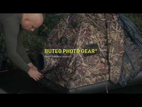 O design de camuflagem natural permite-lhe aproximar-se incrivelmente das aves e dos mamíferos sem os perturbar. Não o reconhecem como humano, dando-lhe a hipótese de captar grandes planos impressionantes no seu comportamento natural. O tecido da tenda com padrão de junco inclui vários pontos de fixação para adicionar ramos, juncos ou uma rede de camuflagem extra. Com 20 conjuntos de laços e cordas, camufla-se perfeitamente no ambiente.