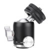 Mini cabeça de bola com uma conexão de 1/4” na parte superior e um adaptador Cold Shoe na parte inferior é ideal para conectar acessórios.
