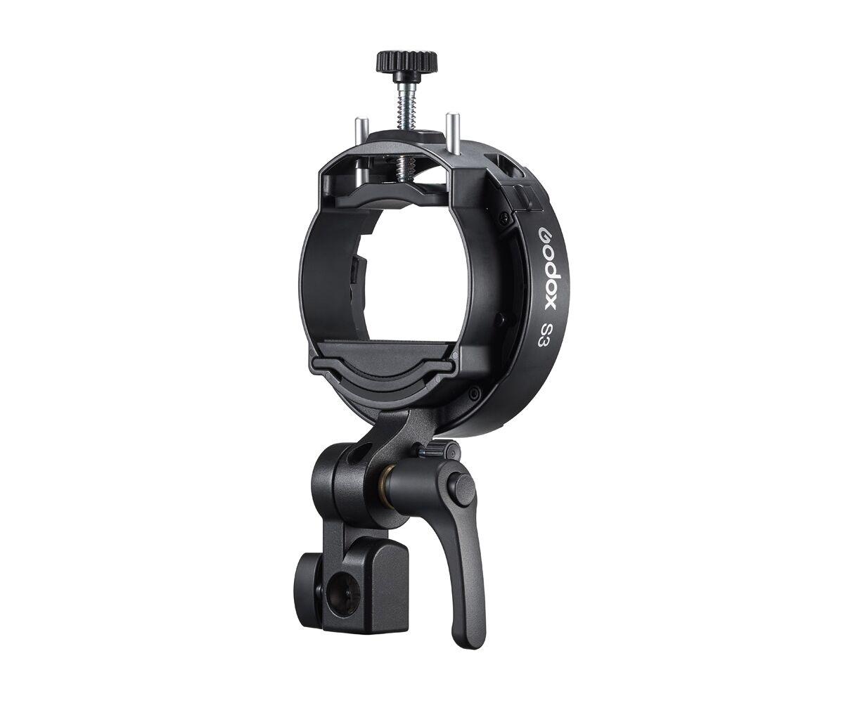 Apresentamos o novo suporte Godox tipo S3 para flash Speedlite com encaixe Bowens, redesenhado para ser mais compacto e permitir uma configuração de iluminação mais rápida. Este suporte universal é compatível com uma vasta gama de flashes de câmaras e flashes externos, pode ser instalado de forma rápida e segura e suporta modificadores com encaixe Bowens, oferecendo inúmeras possibilidades criativas.