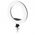 Esta lâmpada de anel compacto e leve tem um diâmetro de 45 centimetros.