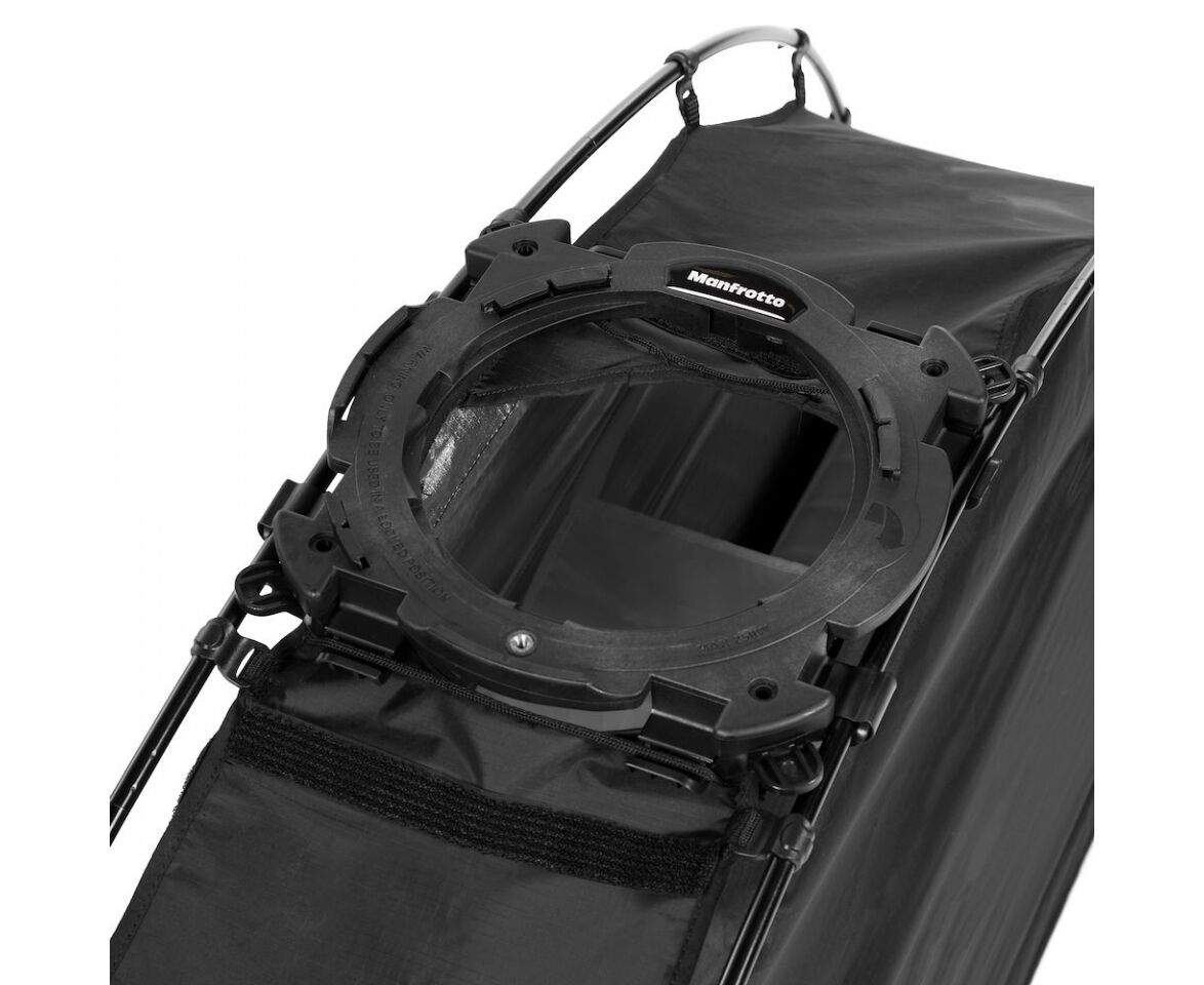 O tecido softbox de iluminação também permanece preso ao RapidExoframe e simplesmente desliza ao longo da estrutura depois de montada e prende na posição em ambas as extremidades.