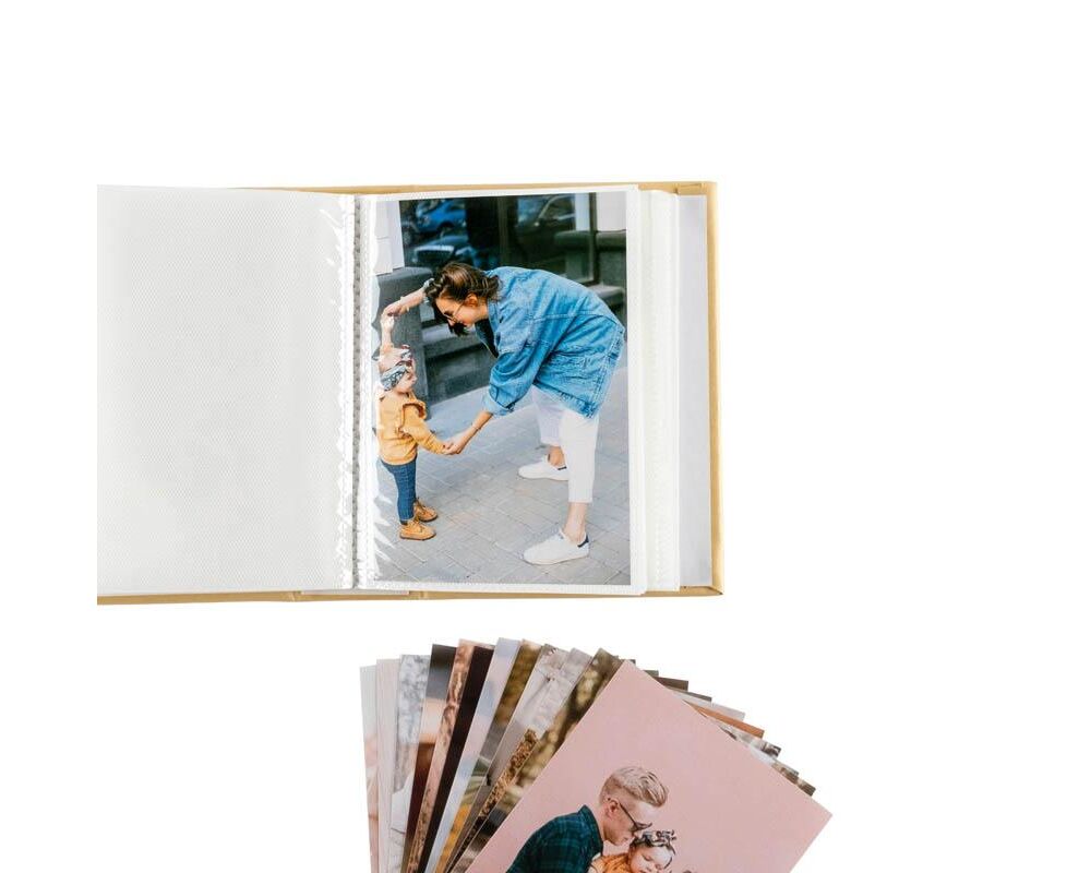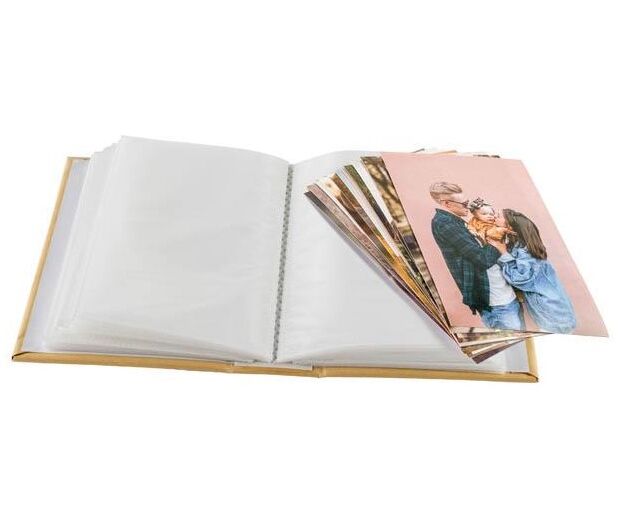Álbum disponível na cor Craft, prático e fácil de usar. Basta introduzir as fotografias na bolsa, não necessita de stickers nem cola.