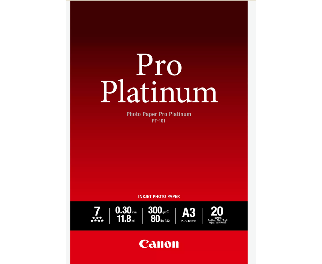 CANON Papel para Impressora Jato de Tinta Fine Art Glossy Pro Platinum PT-101 A3 - 20 Folhas