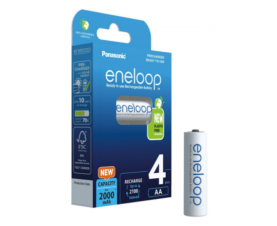 ENELOOP Plastic FREE Pilha Recarregável R6 AA 2000mAh - 4 Unidades