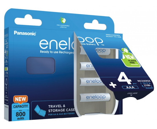 ENELOOP Plastic FREE Pilha Recarregável R3 AAA 800mAh com caixa - 4 Unidades
