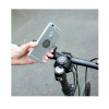 A fixação do smartphone é feita através de magnetismo e a fixação nos tubos facilmente ajustada através de velcro.
