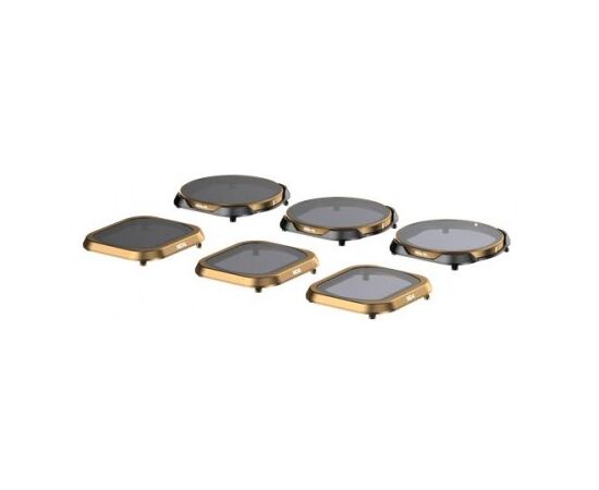 Na embalagem de 6 filtros PolarPro, os filtros Vivid e os filtros Shutter são combinados para o drone DJI Mavic 2 Pro. Este kit é parte da série de PolarPro Cinema filtra para zumbido DJI Mavic Pro 2 e é constituído por três filtros neutros / polarização combinado e três filtros de densidade neutros. Você usa esses filtros de polarização / neutro para evitar reflexos e saturar cores em dias ensolarado quando a velocidade do obturador da câmara está definida correta mente. Estes filtros PolarPro são projectados especificamente para uso no drone DJI Mavic 2 Pro e não se encaixam no zoom do DJI Mavic 2.