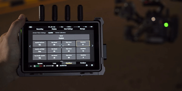 O modo de controle de espelho oferece ao monitor remoto de alto brilho uma interface de controle idêntica à do monitor principal, incluindo todos os recursos avançados, como reprodução de clipe de origem e configurações de câmera e gimbal, que agora podem ser ajustados remotamente mesmo quando Ronin 4D é montado em plataformas de expansão como um jib, came de cabo ou suporte de veículo.