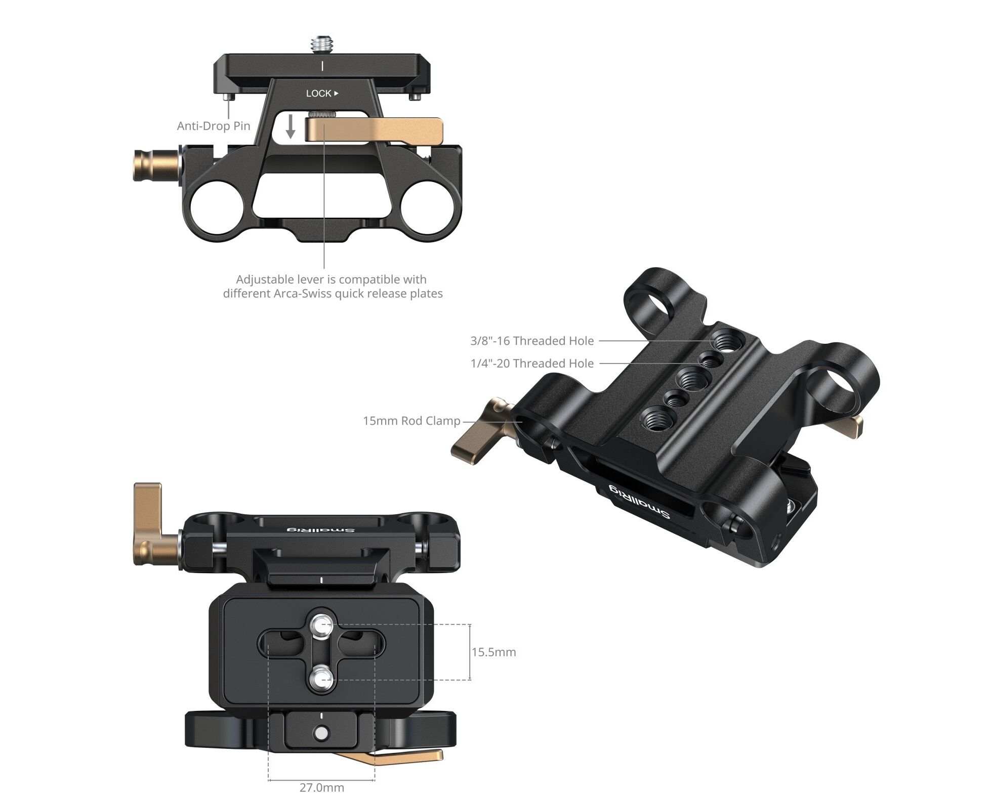 SMALLRIG 5365 Placa de Montagem Arca-Type com Braçadeira de Haste Dupla 15mm