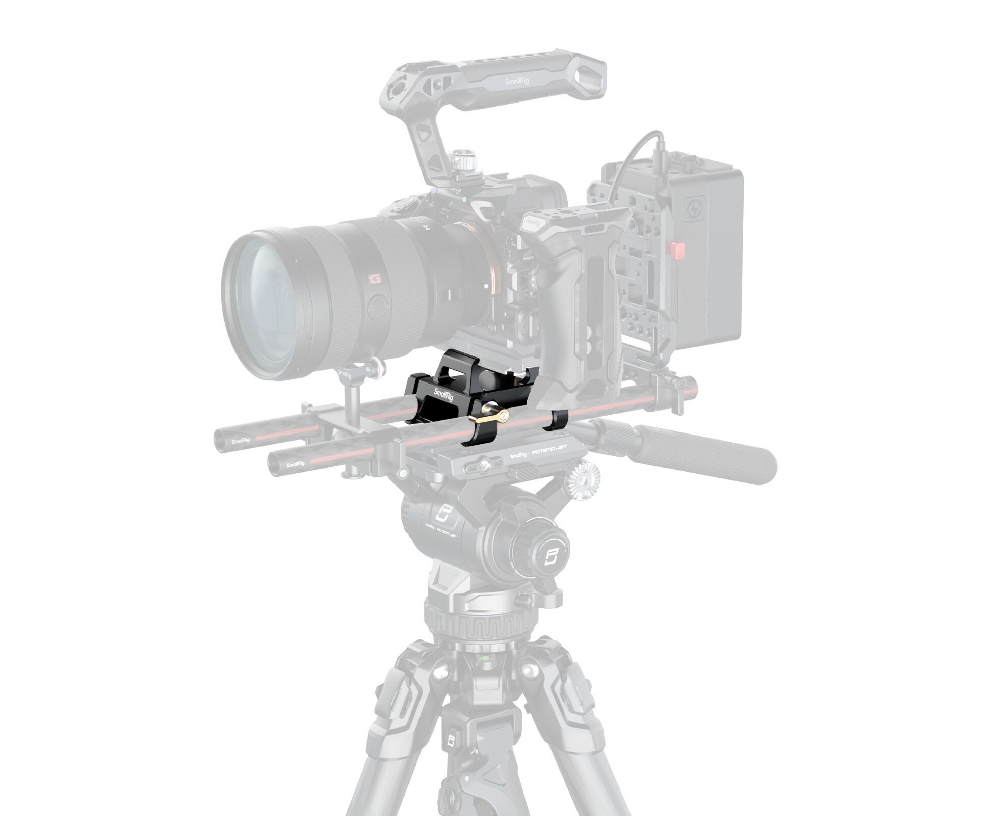 - Permite a montagem rápida de hastes duplas de 15 mm para expandir as configurações profissionais com sistemas de follow focus, matte boxes, placas de bateria de montagem em V e outros acessórios