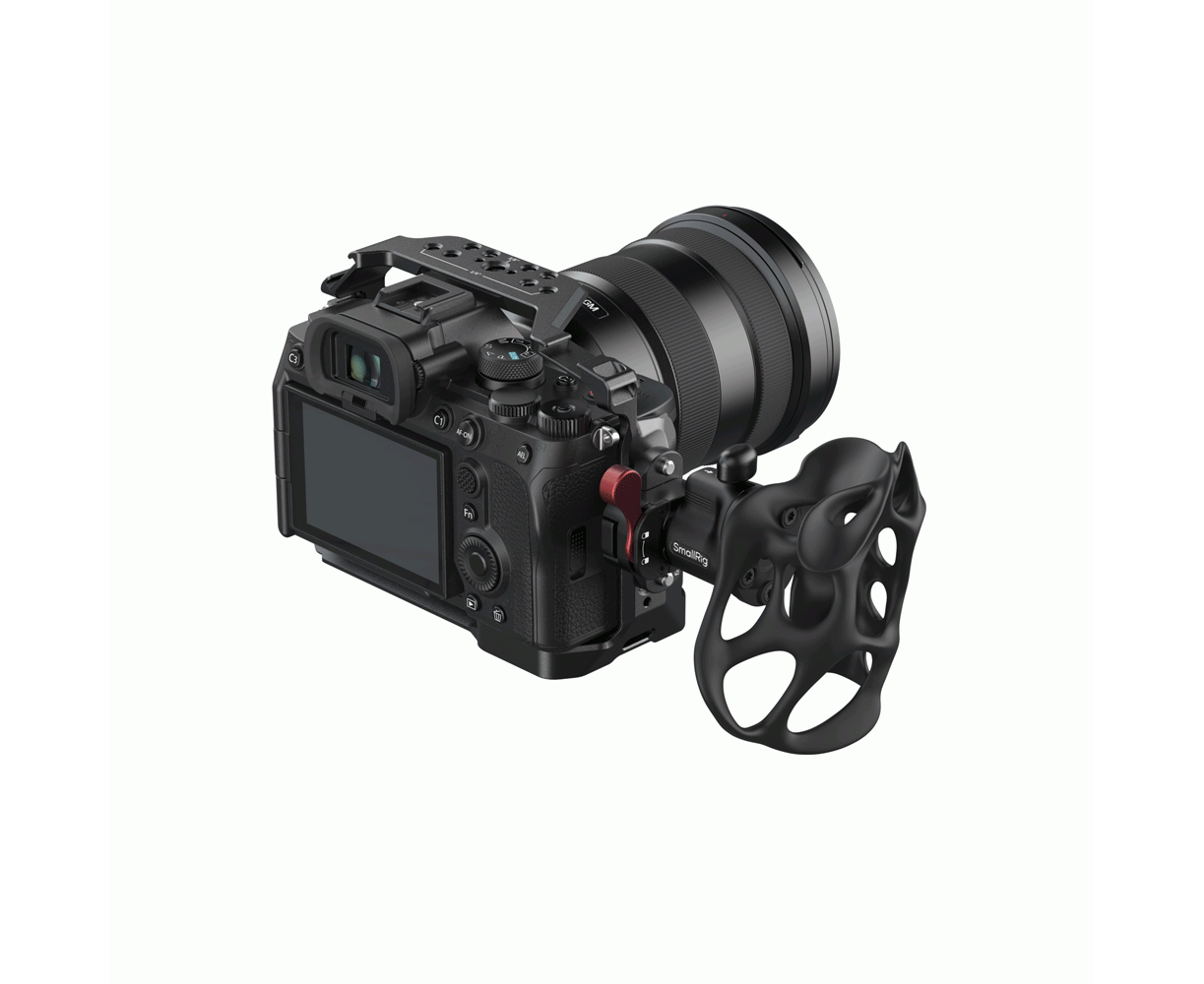 O seu design oco inovador realça o visual, enquanto a pega personalizada garante um conforto superior durante a utilização. A rotação de 360° com um toque e sem passos permite ajustes suaves do ângulo durante a filmagem. Com uma capacidade de carga de 15 kg, esta pega garante estabilidade e durabilidade.