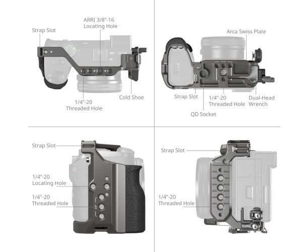 O kit inclui uma cage e uma braçadeira para cabos. Também conta com o sistema de liberação rápida HawkLock patenteado da SmallRig, incluindo um trilho NATO e uma placa de liberação rápida Arca-Swiss, permitindo uma montagem segura e suave com apenas um clique em acessórios HawkLock, como punhos laterais (ID 4485), placas de montagem de liberação rápida (ID 4486) e muito mais.